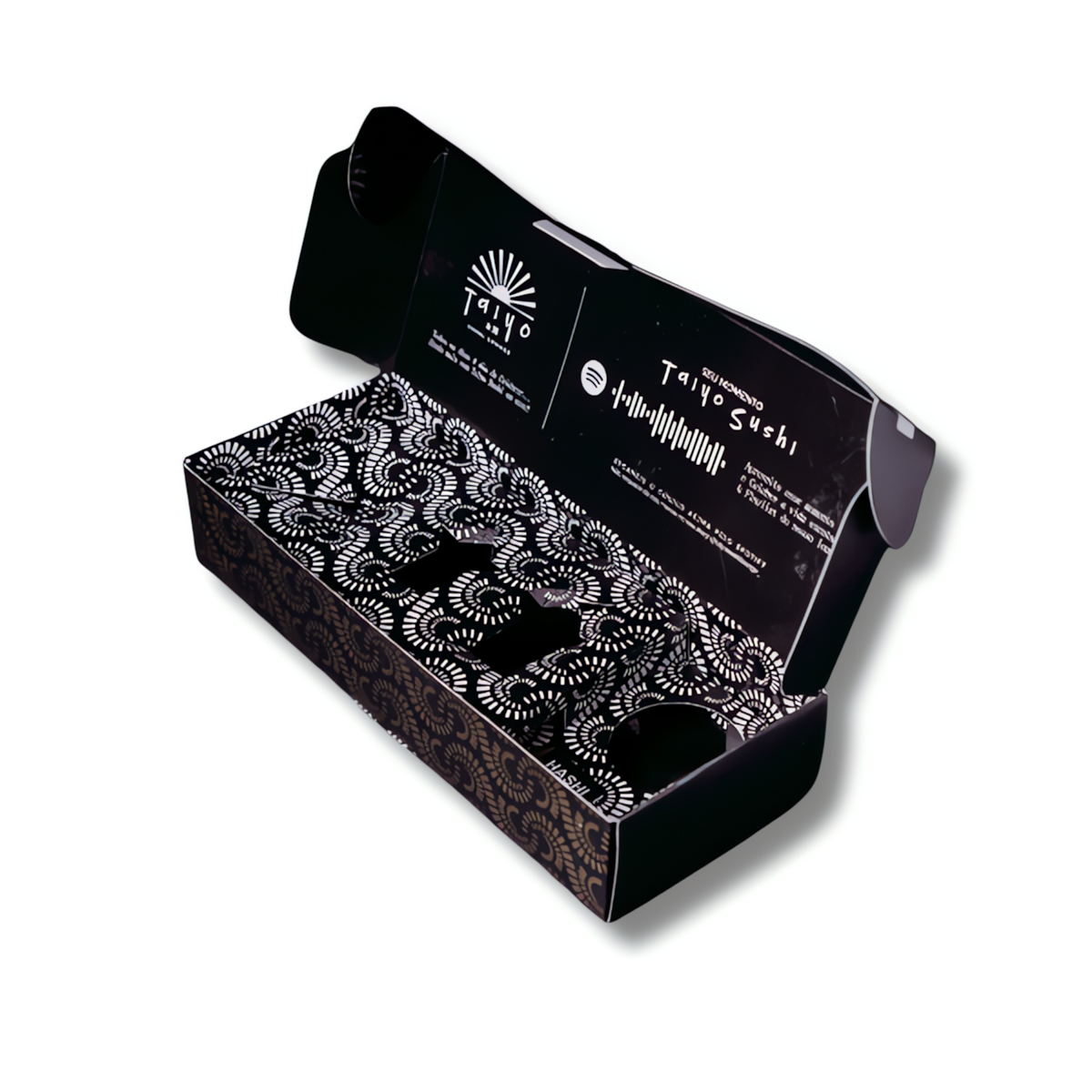 A Caixa Experiência Compartimentada para Molhos e Hashi é a escolha ideal para restaurantes japoneses que prezam por uma entrega com requinte, proteção e principalmente com uma experiência única, que envolve o cliente... que contribuem para  identidade visual impactante. Com acabamento sofisticado e design exclusivo, valoriza ainda mais a experiência do cliente desde a embalagem.