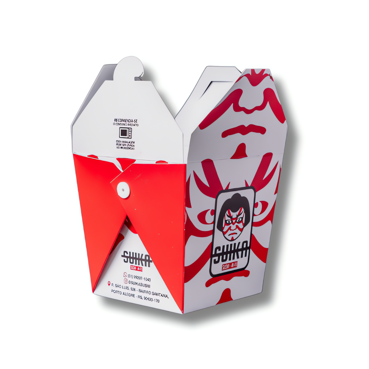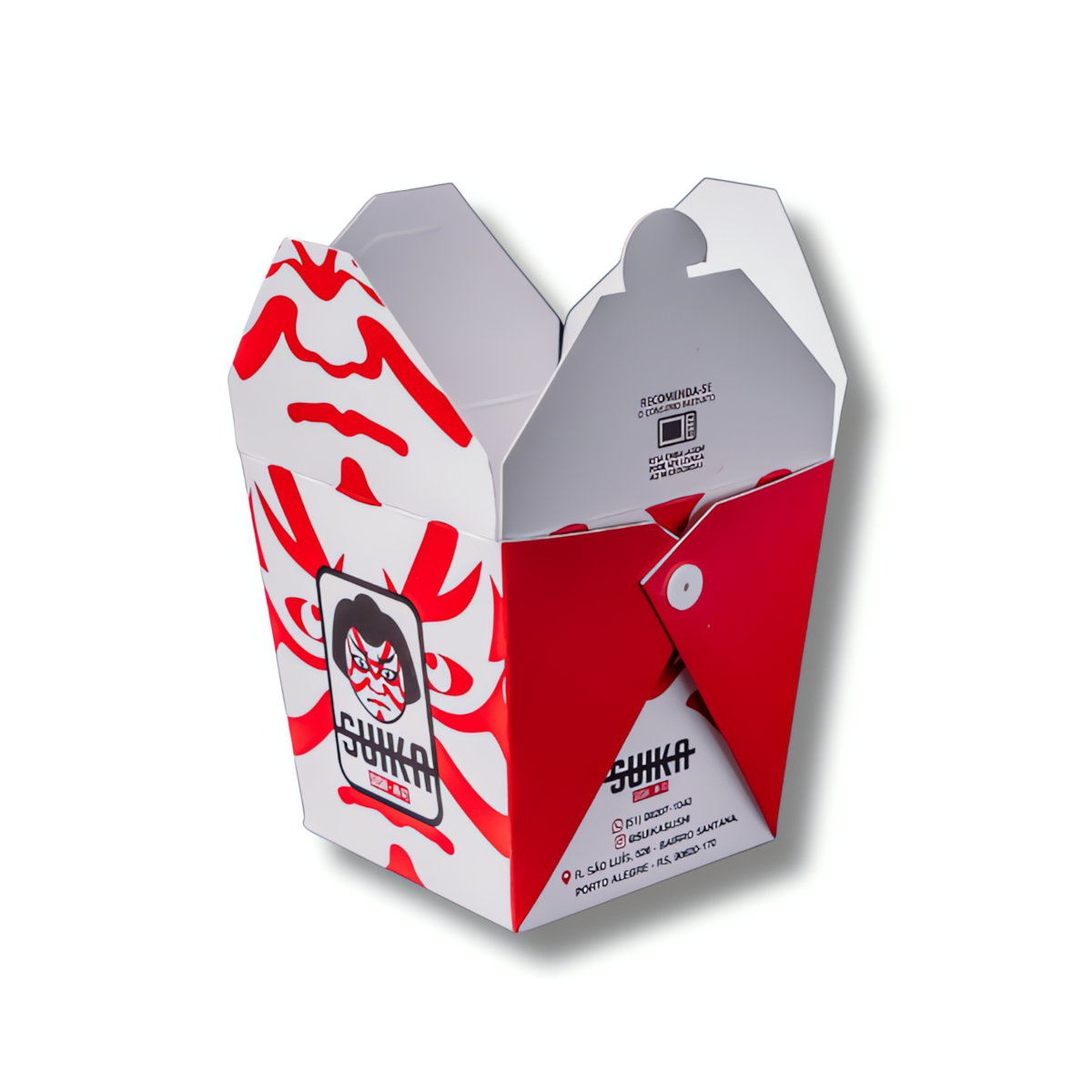 • Material: Papel cartão com revestimento interno para alimentos quentes e molhos